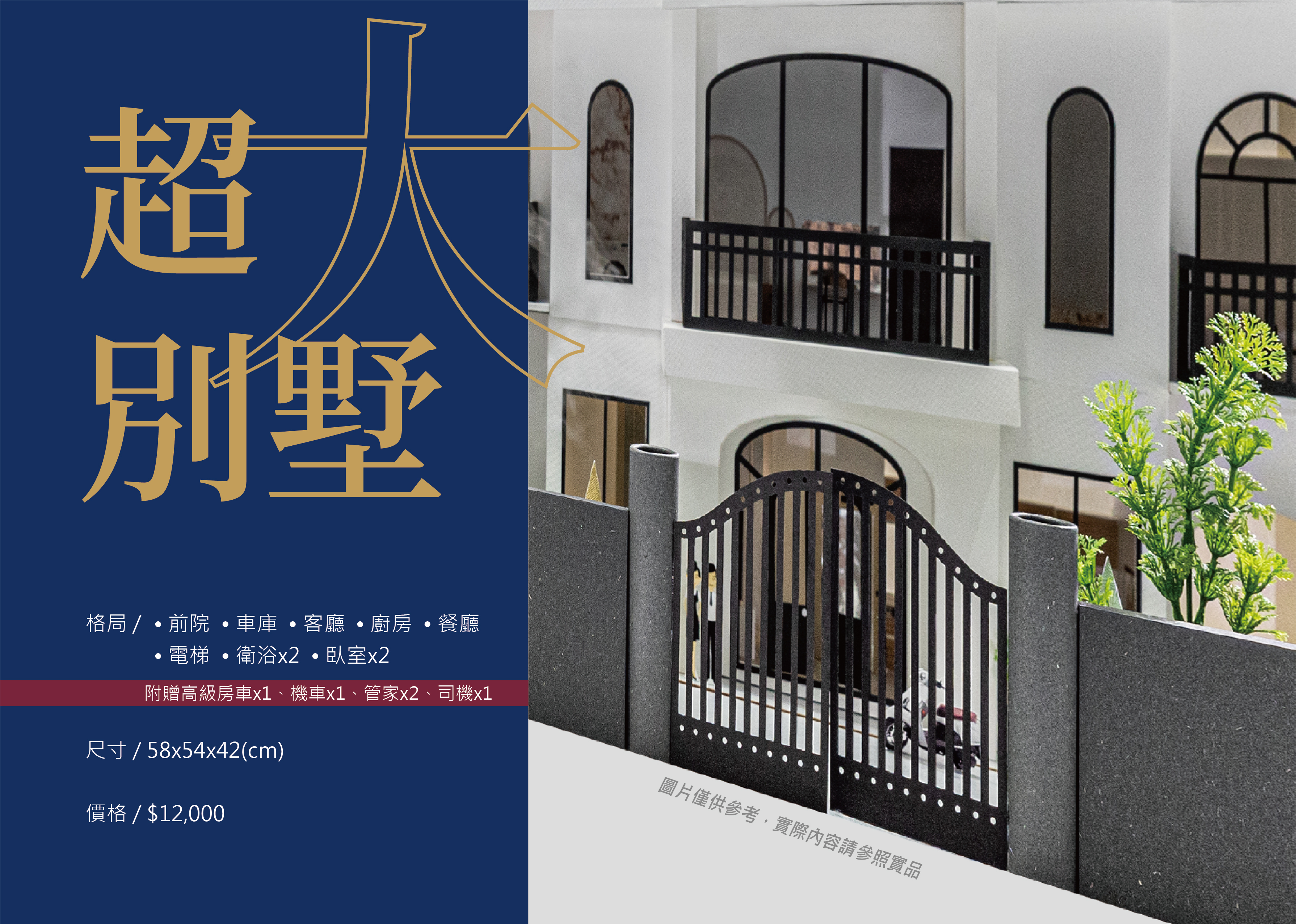 空間規格:2房2衛2廳1廚房、庭院、1房車1機車 2管家